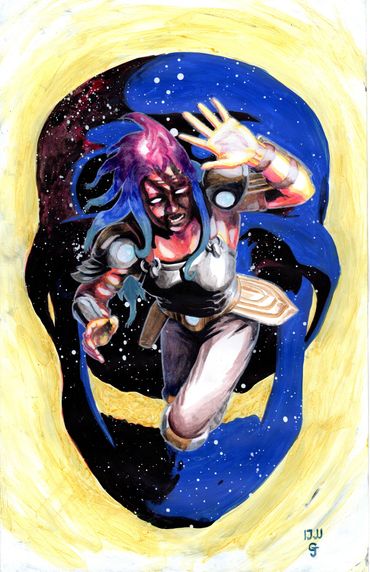 Time-lapse video of my process of painting another piece for the Golden League's Blackworld Saga.